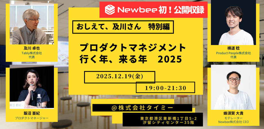 昨日(2025/12/19)、Newbeeの「プロダクトマネジメント 行く年、来る年 2025」というイベントに登壇した。パネルディスカッション形式のイベントで、主催者から事前にお題が渡されていた。お題は以下の3つ。
